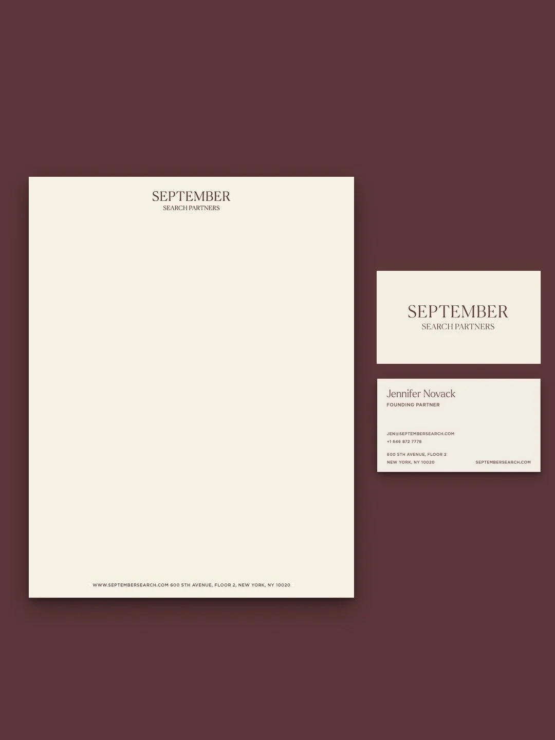 The work evolved into an ongoing creative partnership, supporting September Search as their brand continues to take shape in real time. We’ve since created stationery, business cards, email templates, client handbooks, and more assets that solidify their brand.